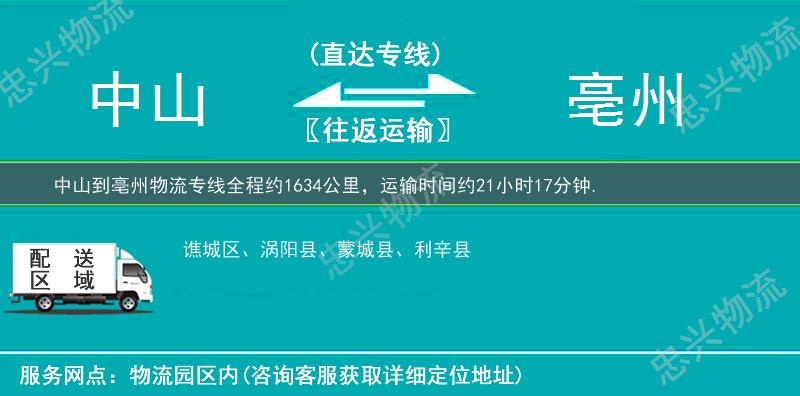 | 中山-亳州 | 電話咨詢 | 電話咨詢 | 2-7天 |